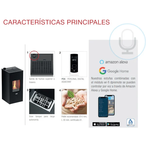 Gracias a la normativa Ecodesign, este modelo ofrece hasta un 40% de ahorro en combustible, logrando una calefacción eficiente y sostenible. El pellet, como fuente de energía, es un material ecológico, económico y de gran poder calorífico que contribuye al respeto por el medio ambiente.